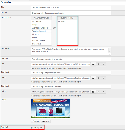 When setting up a promotion, it is very important to specify for which user profiles the promotion should be apparent, as shown in the screenshot below.